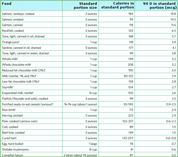From the USDA/USDHHS Guidelines: “Adequate vitamin D status is important for health. Extreme lack of vitamin D (i.e., vitamin D deficiency) results in rickets in children and osteomalacia(softening of bones) in adults. Adequate vitamin D also can help reduce the risk of bone fractures. Although dietary intakes of vitamin D are below recommendations, recent data from the National Health and Nutrition Examination Survey (NHANES) indicate that more than 80 percent of Americans have adequate vitamin D blood levels. Vitamin D is unique in that sunlight on the skin enables the body to make vitamin D.”